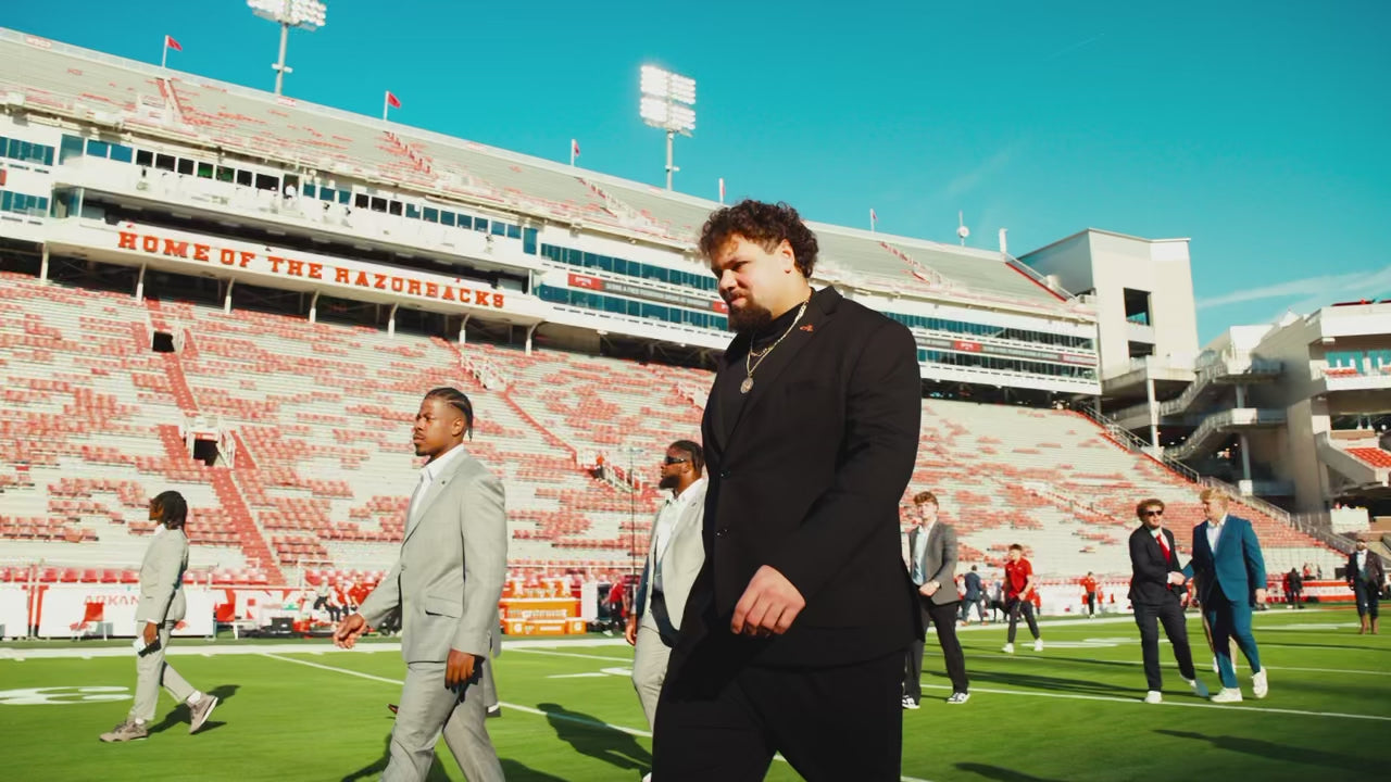 Fernando Carmona Jr. is the heartbeat of the Razorbacks’ offensive line, a captain whose fire, toughness, and loyalty fuel every drive. Whether it’s leading his brothers through the grind of practice or laying it all on the line under the lights, Fernando shows what true leadership looks like. He’s not just playing for himself — he’s playing for every man beside him. A warrior, a brother, and a leader in every sense of the word.